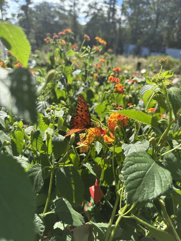 The Lantana 'Miss Huff' is a resilient perennial known for its vibrant clusters of orange, pink, and yellow flowers that attract butterflies and other pollinators. This variety is particularly valued for its ability to thrive in a variety of conditions, making it a versatile choice for gardeners.