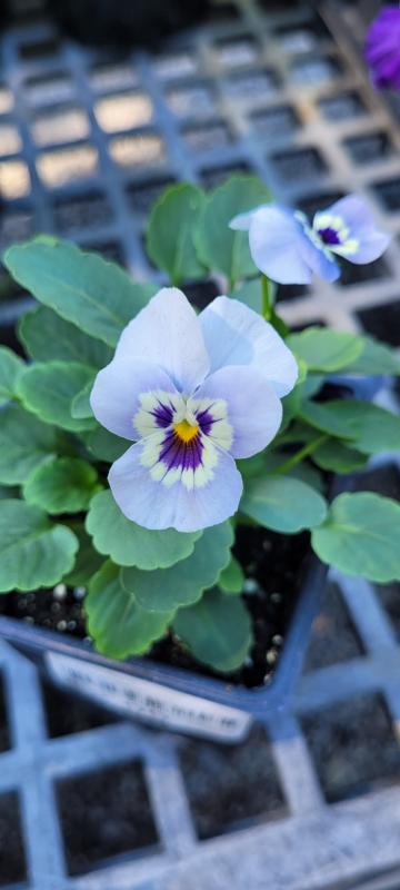 Violas are hardy and versatile, thriving in a range of conditions. They prefer full sun to partial shade and are tolerant of cooler temperatures, which allows them to bloom early in the spring and continue through the fall. The 'Penny' variety is particularly noted for its abundant flowering, providing a long-lasting display of color.