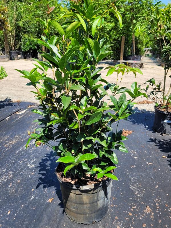 Growing to a height of 10 to 15 feet, this shrub can be easily shaped through pruning, making it versatile for various landscape designs. Its glossy, dark green leaves provide year-round interest, contributing to a lush and vibrant garden aesthetic.