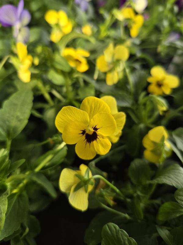 Violas are hardy and versatile, thriving in a range of conditions. They prefer full sun to partial shade and are tolerant of cooler temperatures, which allows them to bloom early in the spring and continue through the fall. The 'Penny' variety is particularly noted for its abundant flowering, providing a long-lasting display of color.