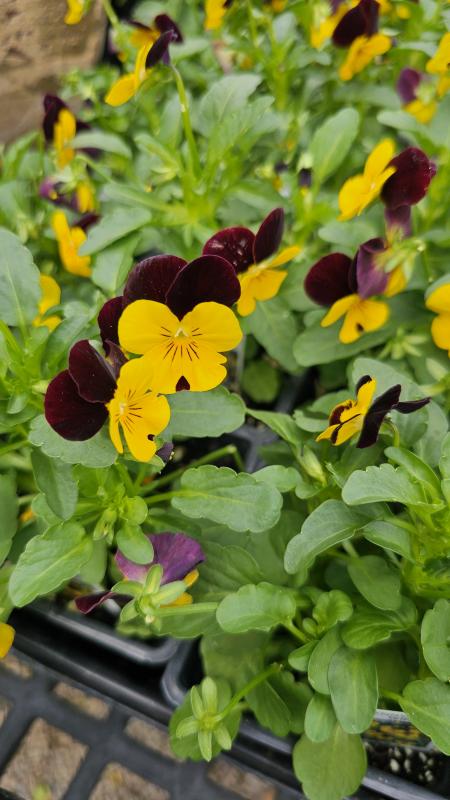 The Viola 'Penny' is a striking addition to any garden, known for its unique black blooms that create a dramatic contrast against lush green foliage. This annual variety is celebrated for its compact growth habit, making it an ideal choice for borders, containers, or as ground cover.