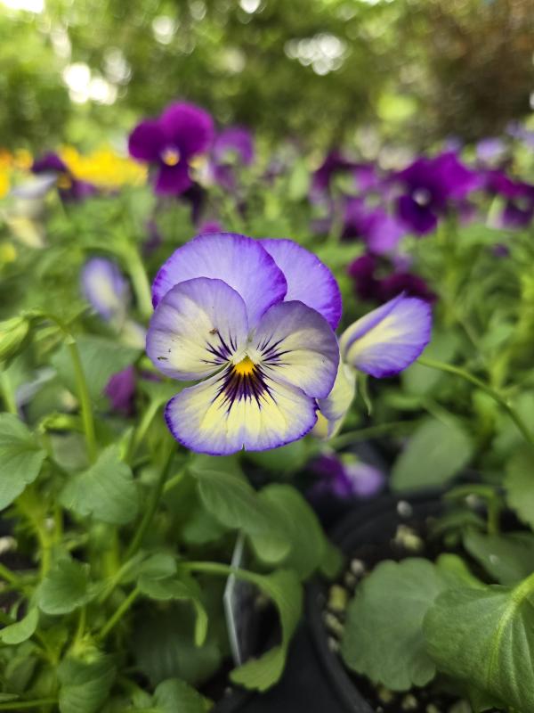 Violas thrive in well-drained soil with consistent moisture. They prefer full sun to partial shade, making them versatile for various planting conditions. Regular deadheading encourages more blooms and keeps the plants looking tidy.