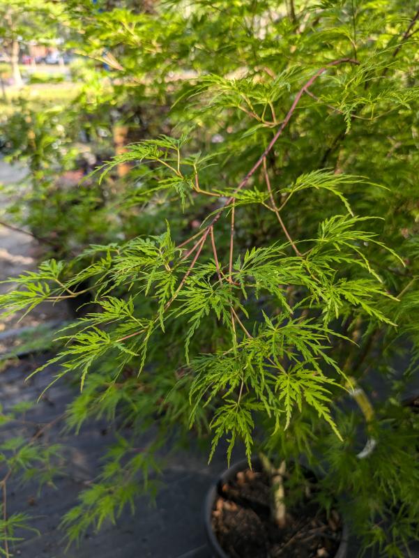 The Seiryu Japanese Maple is a unique and visually striking variety known for its upright, cascading form and delicate foliage. This cultivar features finely dissected leaves that emerge a vibrant green in spring, transitioning to a stunning array of golden-yellow and orange hues in the fall. The intricate leaf structure adds a layer of texture to any landscape.