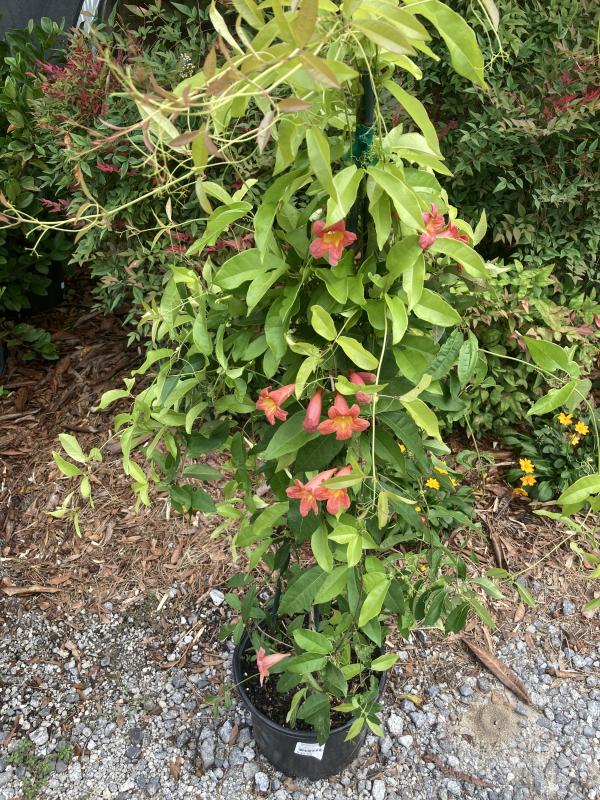 In addition to its aesthetic appeal, Bignonia 'Tangerine Beauty' attracts hummingbirds and butterflies, enhancing the liveliness of your garden. This hardy vine thrives in full sun to partial shade and is adaptable to various soil types, making it a versatile addition to your outdoor space.