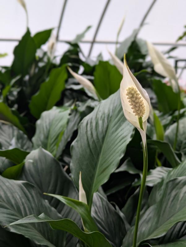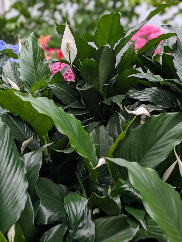 The Spathiphyllum, commonly known as the Peace Lily, is a popular choice in indoor house plants, renowned for its elegant white blooms and lush green foliage. This plant thrives in low to medium light conditions, making it an excellent addition to various indoor spaces.