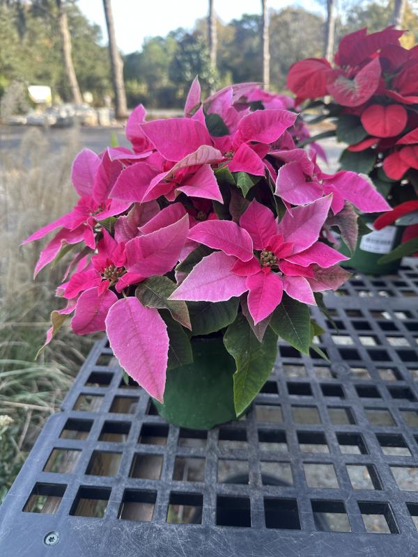 Enhance your living space with the captivating Poinsettia Princettia in hot pink, a plant that embodies festive cheer and elegance.