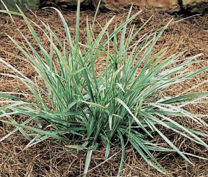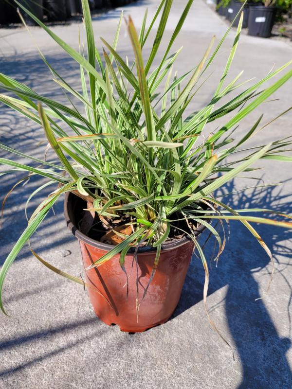 Oph. Aztec Grass is a striking ornamental grass known for its unique variegated foliage. The leaves feature a beautiful blend of green and cream, which adds depth and texture to any landscape. This grass typically grows in clumps, reaching a height of up to 3 feet, making it a versatile choice for borders, mass plantings, or as a focal point in garden design.
