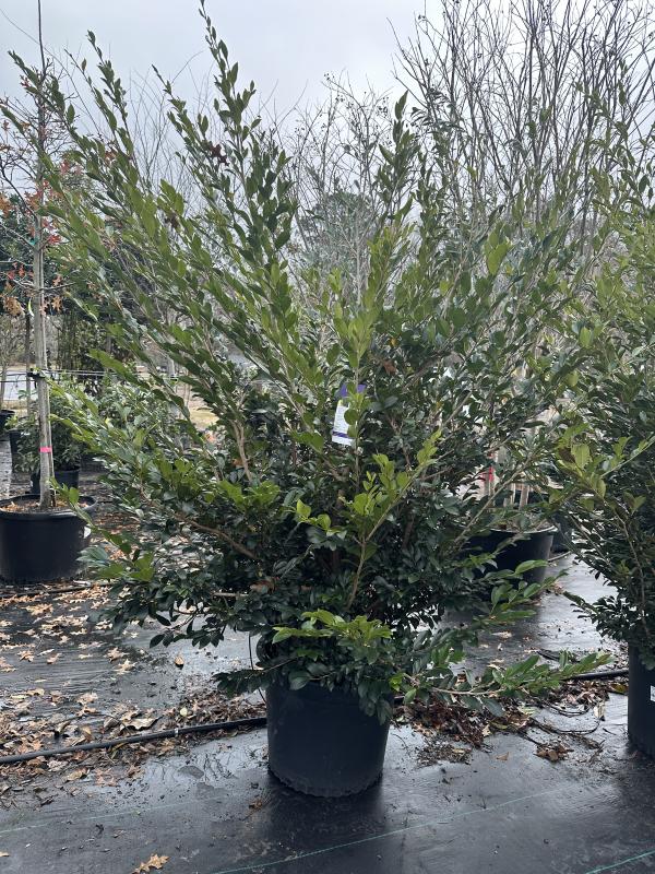 The Distylium 'Linebacker' is a versatile evergreen shrub that adds structure and interest to any landscape. With its dense, compact form, this variety is ideal for foundation plantings, hedges, or as a standalone specimen. The foliage features glossy, dark green leaves that maintain their vibrant color throughout the year, providing a consistent backdrop in your garden.
