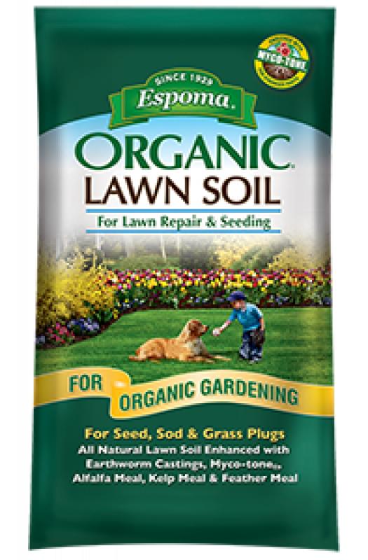 Espoma Organic Lawn Soil is a blend of the finest natural & organic ingredients. It contains sphagnum peat moss, compost and a natural wetting agent to create a superior environment for grass seed germination and establishment. To this we add Myco-tone, a blend of mycorrhizae to help build strong roots.