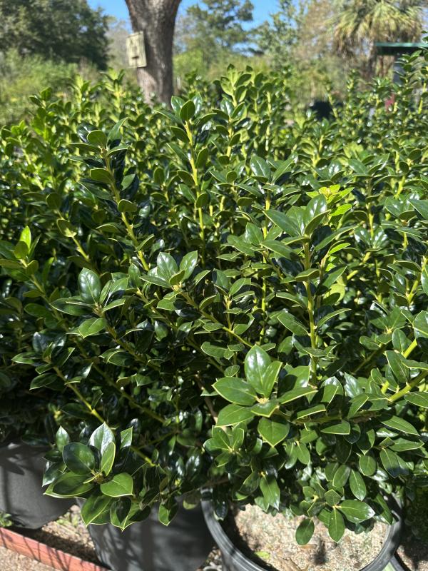 The Burford Holly is a cherished addition to any landscape, known for its compact growth and glossy foliage. This dwarf variety typically reaches a height of 3 to 4 feet, making it an excellent choice for smaller gardens or as a foundation plant.