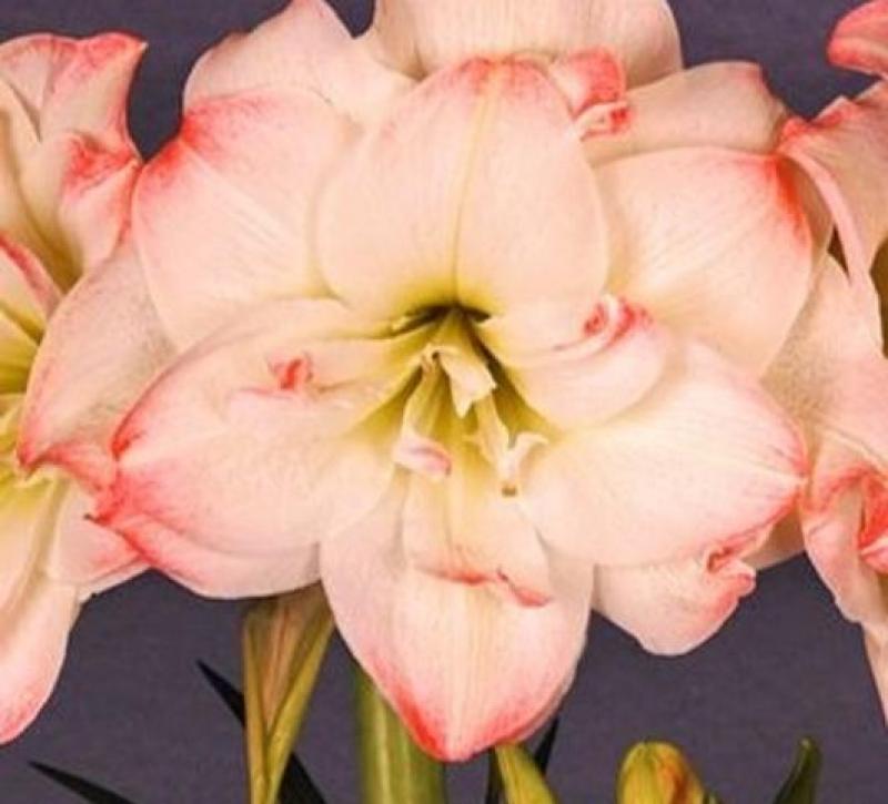 The Amaryllis Bulb in the Amadeus variety showcases a stunning blend of white and pink hues, making it a striking addition to any indoor space. Known for its large, trumpet-shaped flowers, this bulb is a favorite among gardening enthusiasts.