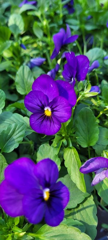 Violas are hardy and versatile, thriving in a range of conditions. They prefer full sun to partial shade and are tolerant of cooler temperatures, which allows them to bloom early in the spring and continue through the fall. The 'Penny' variety is particularly noted for its abundant flowering, providing a long-lasting display of color.