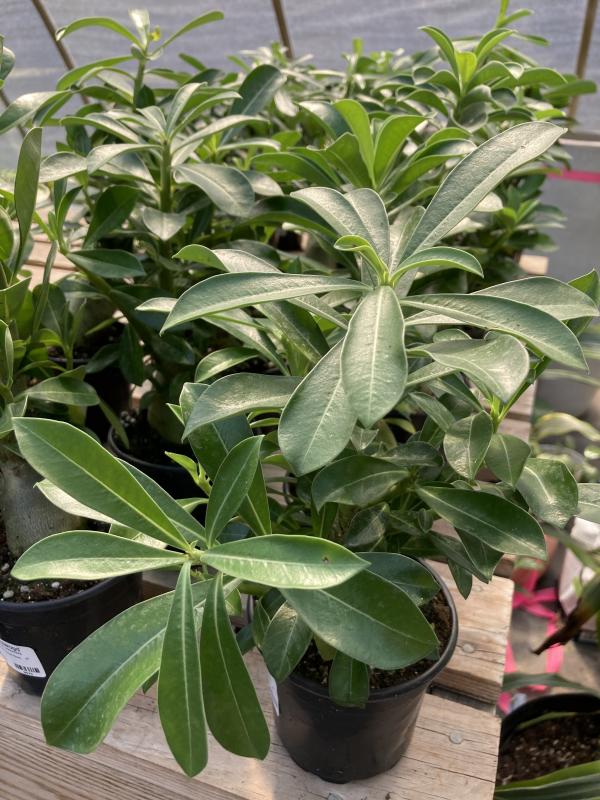 Characterized by its thick, succulent stems and glossy, green leaves, the Adenium thrives in warm, dry conditions and is well-suited for indoor environments. Its ability to store water in its stems allows it to withstand periods of drought, making it a low-maintenance option for plant enthusiasts.